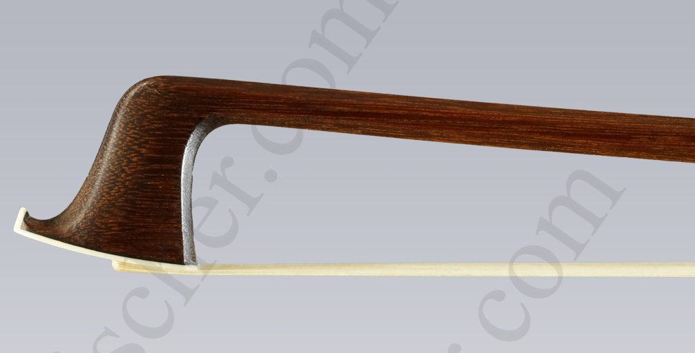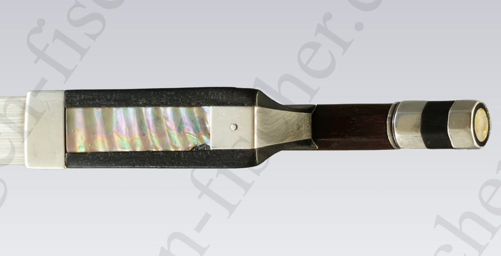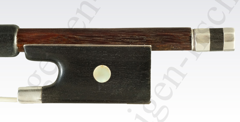 German Violin Bow by Franz Albert Nuernberger Junior (1854-1931) from around 1900. This octogon-edged bow by Nurnberger was made for the known violin maker Eugen Gaertner of Stuttgart (1864-1944), whose name is imprinted on the bow. The strong stick has a light silver-mount and weighs just under 60 grammes. This is a very interesting bow from Albert Nuernberger in very good condition.
