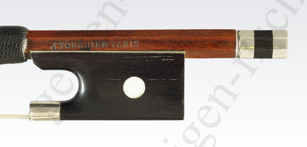 Our bow was made for Joseph TOURNIER (1842-1920), violin maker and dealer in Paris, and also bears his stamp “J.TOURNIER PARIS”. J. Tournier was also supplied by other well-known bow makers such as Louis BAZIN, Louis MORIZOT, E. OUCHARD and Victor FETIQUE.