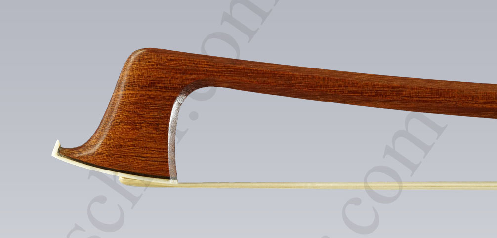 French violin bow by Mars Auguste Husson (Paris) from 1925. This bow from M.A. Husson is very special as it has no traces of wear and tear, a strong stick and a total weight of 59 grammes with the original German silver mounting. With a normal silver mounting the bow weighs 61 grammes.