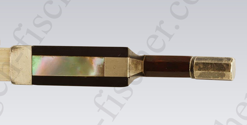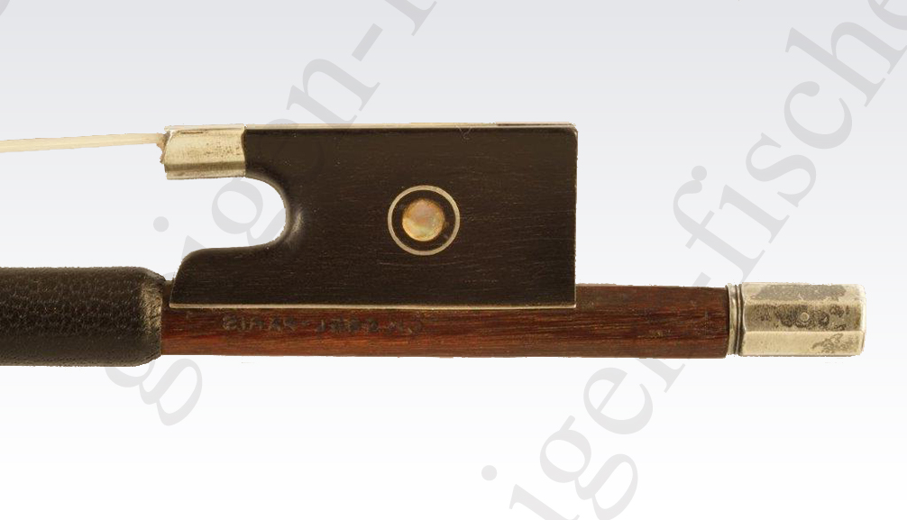 Der Bogen hat eine feste runde Stange aus sehr gutem Pernambukholz. Er ist nach einem VOIRIN-Modell gebaut und trägt den Stempel: „CH.ENEL-PARIS“.