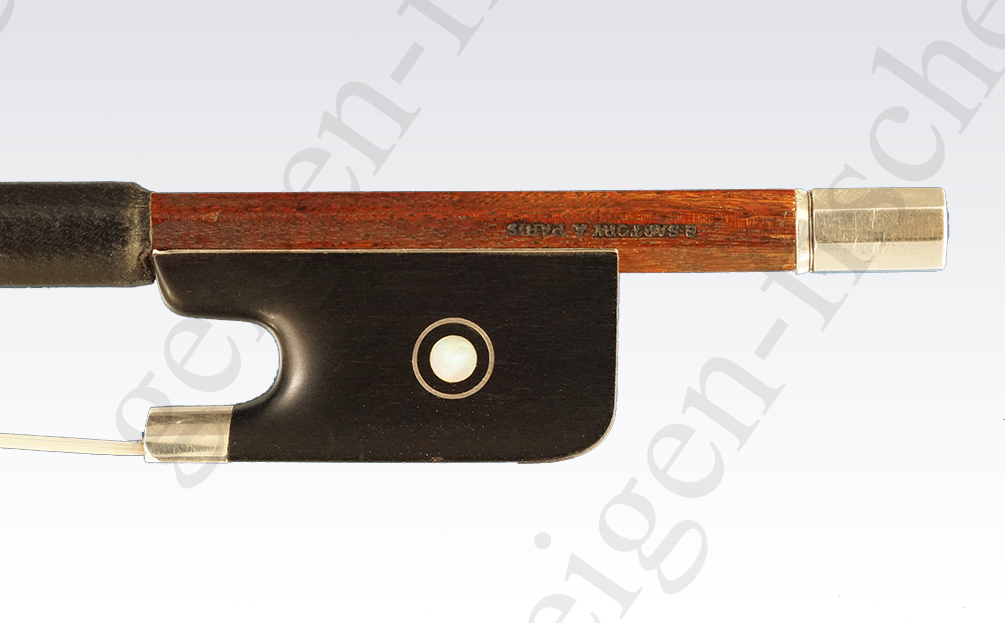 Leider sind nur Stange und Beinchen eine originale Arbeit von Eugène SARTORY, der Frosch wurde später dazu gebaut. Das hat natürlich einen Einfluss auf den Preis des Bogens, der ca. 30% unter dem heutigen Preis eines Cellobogens von Eugène SARTORY liegt.
