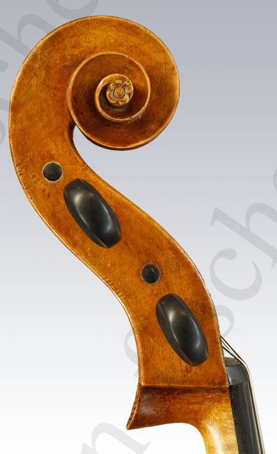 Unser Instrument trägt den originalen Zettel:  Salomon Lutir .A  St. Cecille Place de L`ecole `Paris 1750.  Zusätzlich gibt es einen Brandstempel am Boden unterhalb des Zäpfchens mit dem Namen Salomon, der leider nicht mehr gut zu lesen ist.