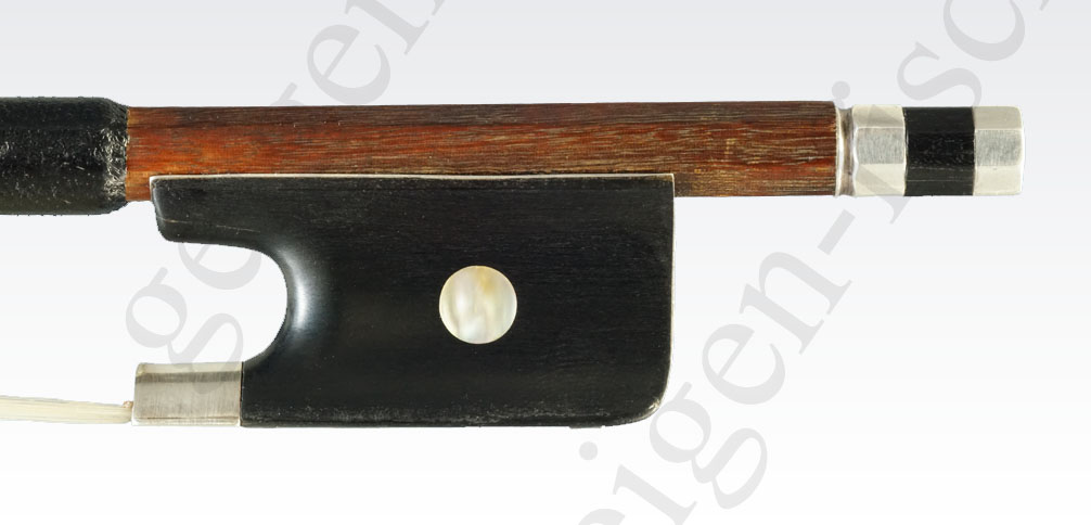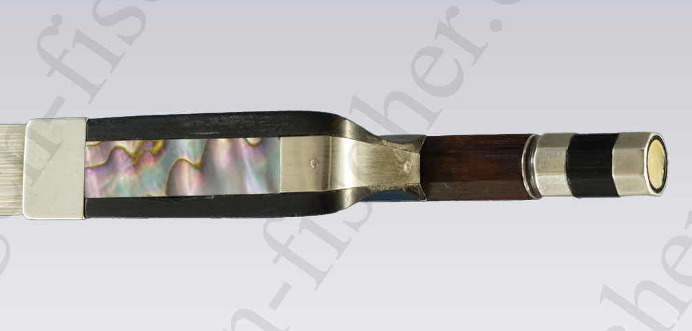 Der Bogen trägt keinen Brandstempel. Die runde Stange ist aus gelbbraunem Fernambuk gearbeitet mit einer Kopfplatte aus Elfenbein. Der Ebenholzfrosch hat ein einfaches Perlmuttauge und wurde laut C. Hans-Karl SCHMIDT um 1890 von August Moritz KNOPF erneuert. Der runde Zwickel ist mit 2 Stiften-, die Bahn mit 2 Schrauben befestigt. Der Bogen wiegt mit einer Silberbewicklung 78,2 Gramm. Alle Metallteile sind aus Silber gearbeitet.