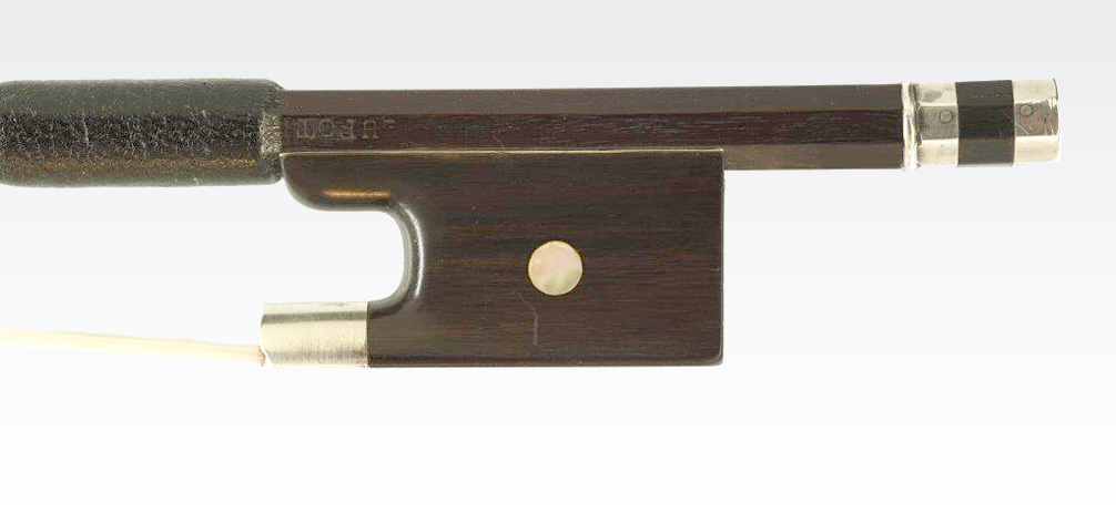 Französischer Violinbogen von Joseph Voirin von ca. 1870. Der Bogen ist ein seltenes Exemplar des Bogenmachers nach dem Modell von Lupot. Der Bogen trägt den Stempel Lupot. Joseph Voirin ist der jüngere Bruder des berühmten französischen Bogenmachers Francois Nicolas Voirin.