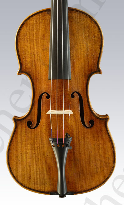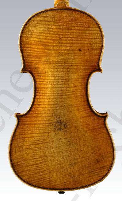 Die Geige ist perfekt erhalten. Sie ist sehr fein gearbeitet mit einem Ahornboden aus einem Stück und einer Fichtendecke mit sehr gleichmäßigen Jahresringen. Der goldgelbe Lack ist transparent und leicht imitiert.
